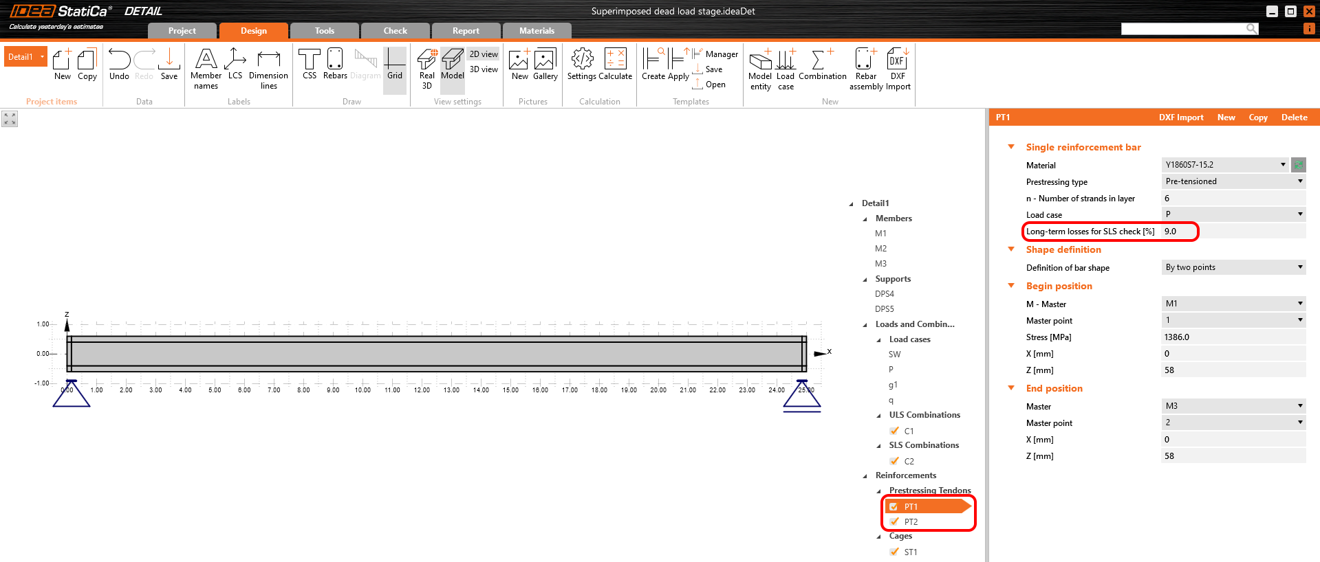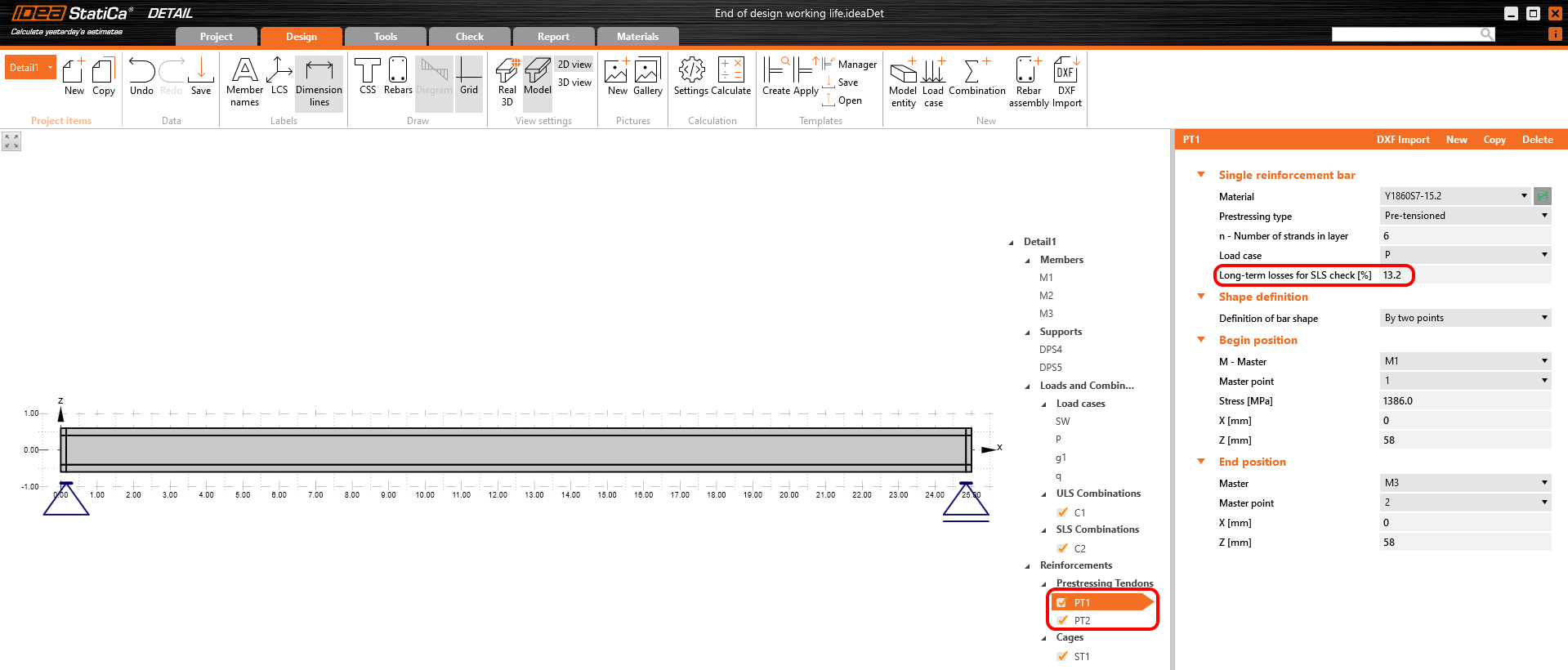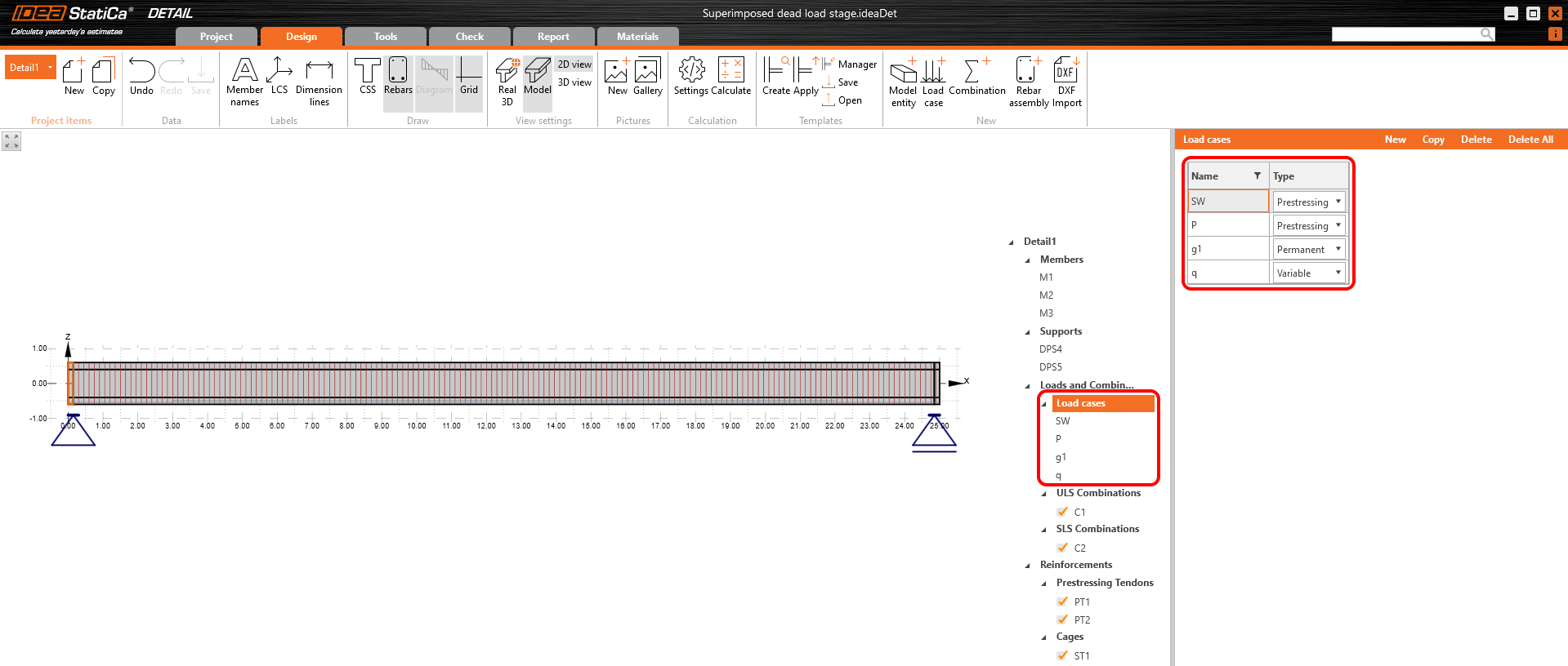 Finally, here is a simple workflow, where you can find the above-described procedure of designing the prestressed concrete structures in the Detail application using pre-tensioned tendons.