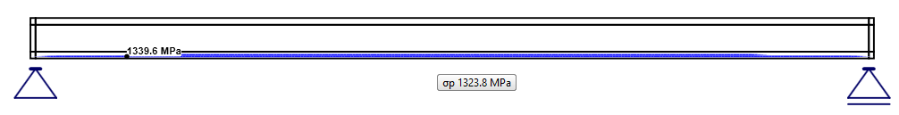 - σpa - Stress after short-term losses. In other words, it is a stress after the transfer of prestressing to the member. It is calculated as σpa = σpr,cor - ΔσpT - Δσpe = σpm0 - Δσpe. In our example σpa = 1319.2 MPa
