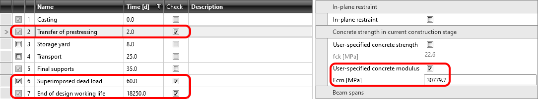What you can actually see in the model for the superimposed dead load stage in short-term effects is a transfer of prestressing stage where t=28 days. So, if you don't need to prestress the beam before 28 days you don't need to create a special model for the design of prestressed concrete beams in the transfer of prestressing stage.