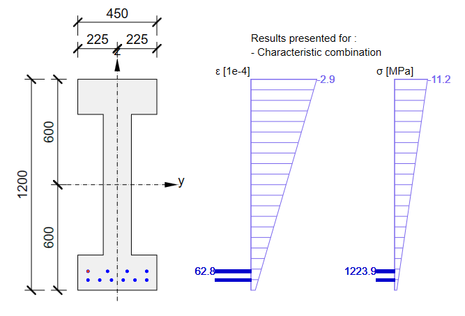 Now you know how to use the Detail application for the design of prestressed concrete structures using pre-tensioned tendons for the transfer of prestressing stage. Just change the geometry and add some discontinuities like openings etc.