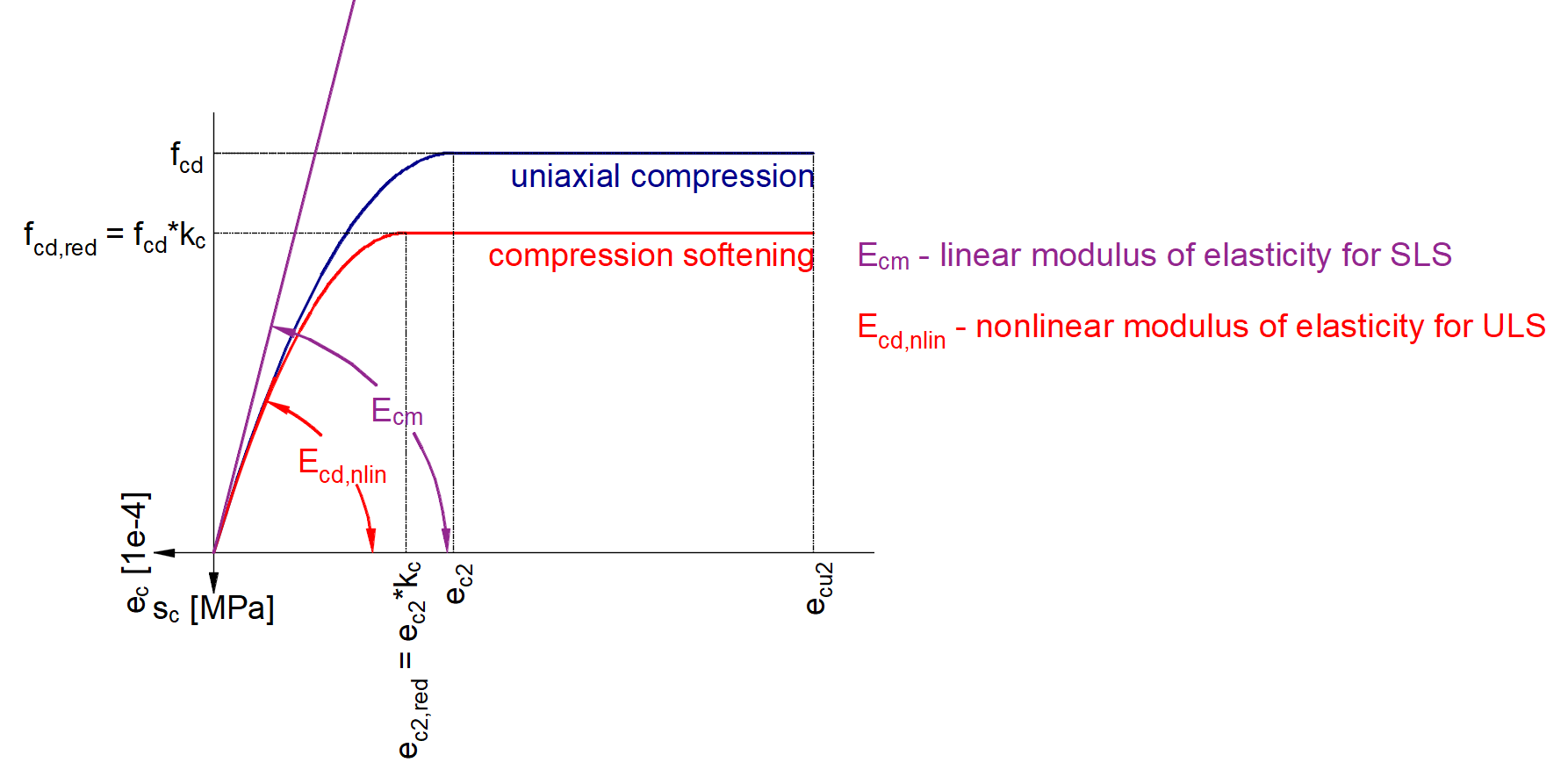 Note that SLS is calculated in the Detail application based on Ecm (not based on fck). On the other hand, ULS is calculated based on fcd from which the parabolic stress-strain diagram is determined.