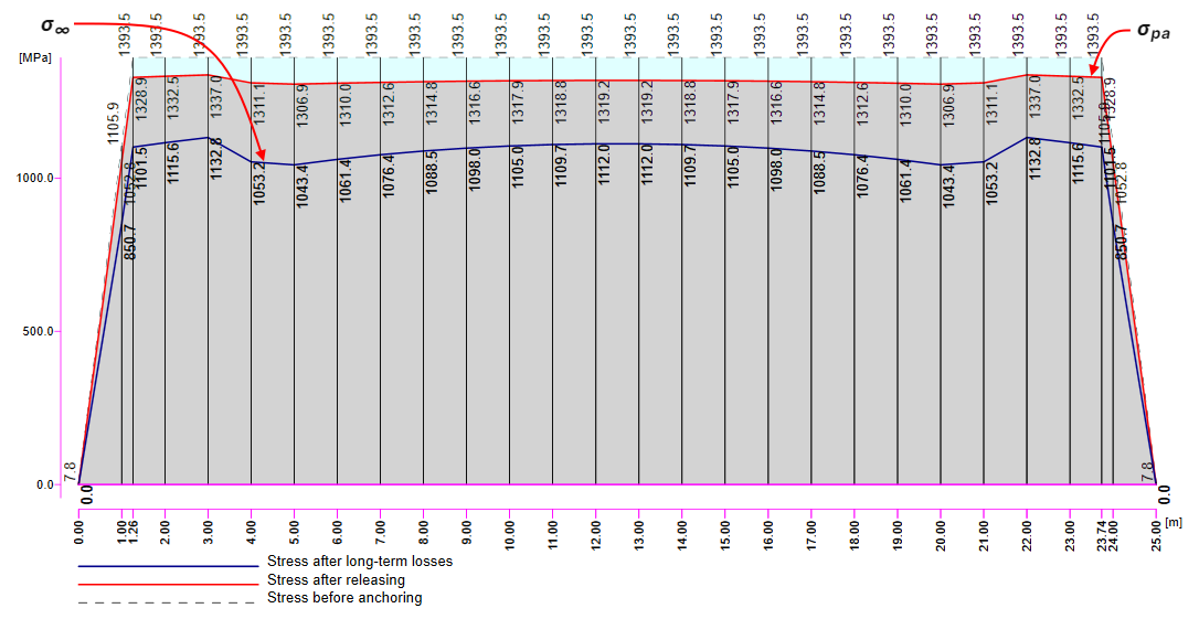 Now recall the figure above (with the Tendon Stress/Losses chart) where the values of σpa (red line) and σ∞ (blue line) are displayed.