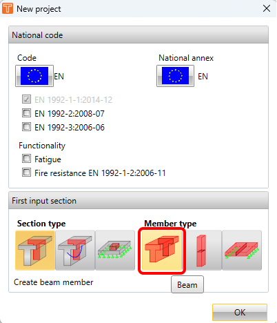 Typical beam geometry templates are available for this type. And, besides standard USL and SLS checks, flexural slenderness can be evaluated.