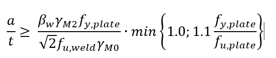 Steel grade1.1 ∙ fy,plate/fu,plateMinimum weld thickness