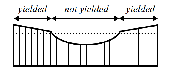Figure 2 - Non-uniform stress distribution of shear stresses with local yielding in a lap joint