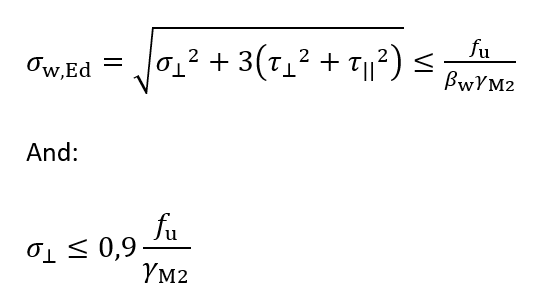 Different weld configurations and load combinations may lead to different stress distributions. A semi-empirical approach was chosen as a basis for the design calculation rules from the Eurocode. Instead of checking the failure mechanism at a micro scale, the welds as a whole are checked on a macroscale. A simplified failure model was assumed, based on plasticity. By calculating back to the experimental test results a failure criterion (weld formula) was determined.