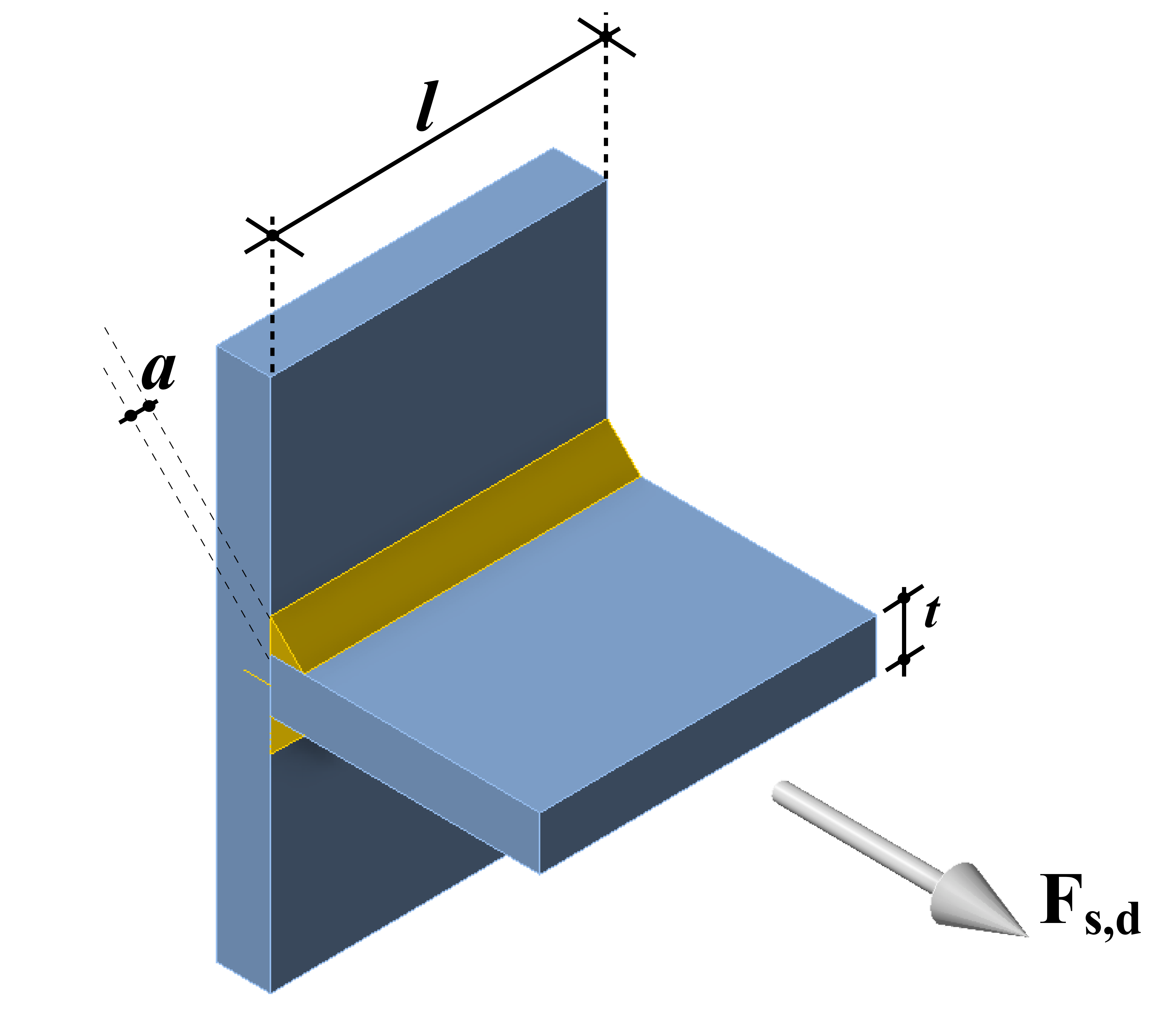 where the magnitude of Fs,d is chosen such that Fs,d = fy,plate ∙ t ∙ l, This leads to the derivation of the following formula used for the detailing check in IDEA for double-sided fillet welds: