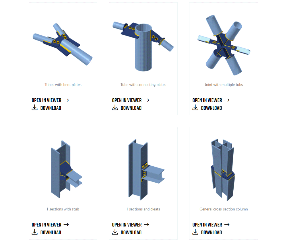Nel Centro di supporto sono disponibili decine di esempi di progetti di connessioni e ne stiamo aggiungendo continuamente altri. Connessioni bullonate, bullonate o saldate, intagli a osso, travi, piastre di base, ancoraggi, tutto ciò di cui avete bisogno...