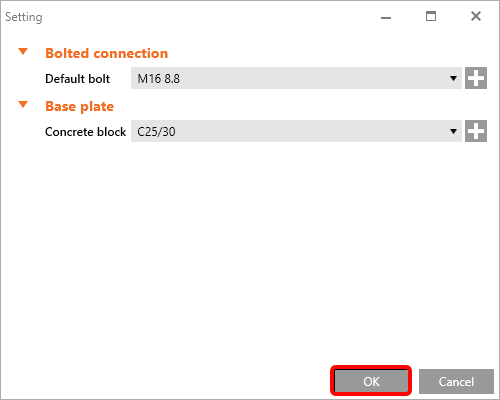 Accetta i valori proposti per i bulloni e il blocco di calcestruzzo e premere OK.