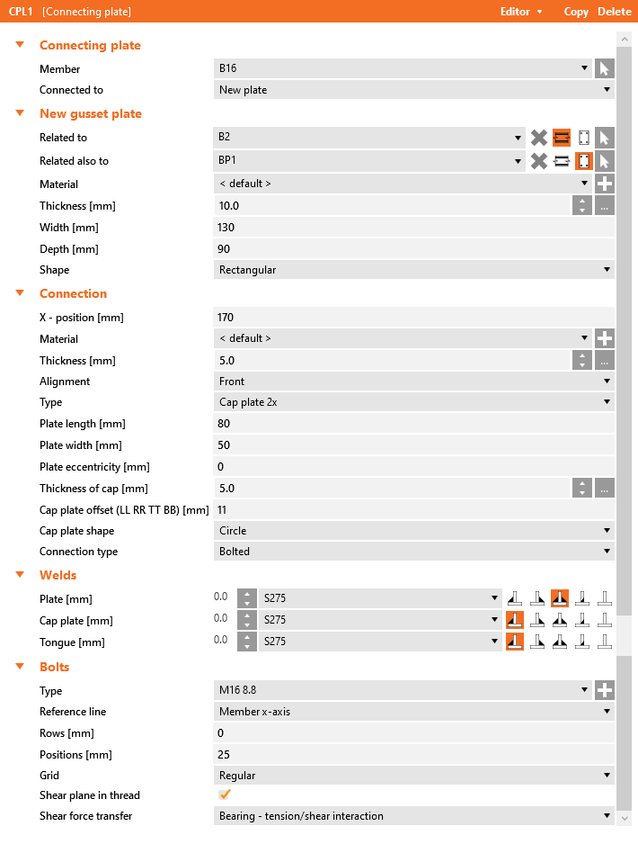 Le impostazioni delle membrature vengono prese dall'applicazione FEA/BIM originale. Puoi, tuttavia, modificare la dimensione della sezione di qualsiasi membratura nella schermata principale del Checkbot, ma ciò interromperà il collegamento con l'applicazione FEA/BIM in questa sessione a meno che non venga nuovamente sincronizzata.