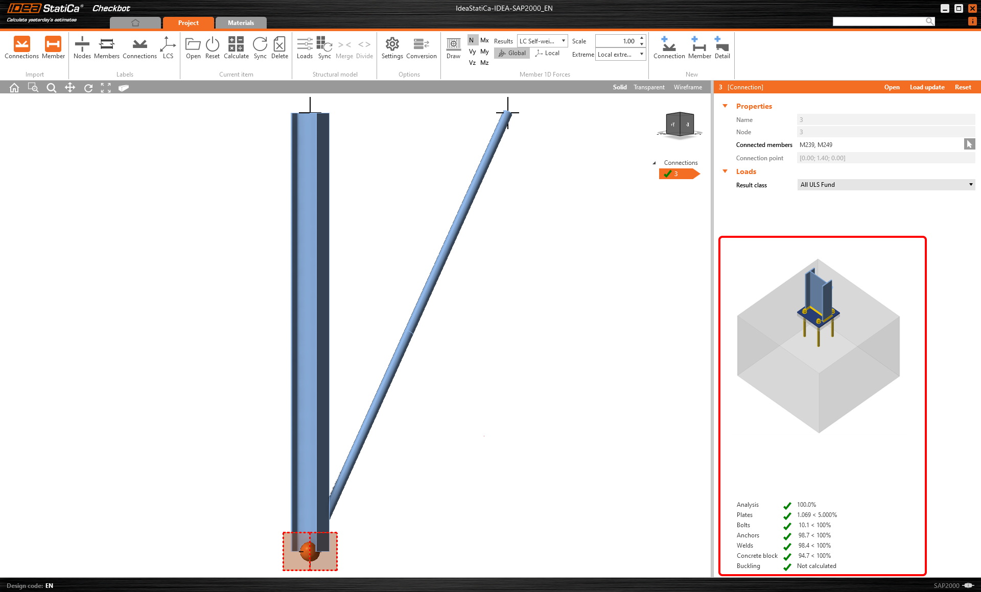 Ciò importerà la colonna e i suoi effetti di carico in Checkbot, con le stesse coordinate, orientamenti e dimensioni della sezione del modello FEA/BIM.