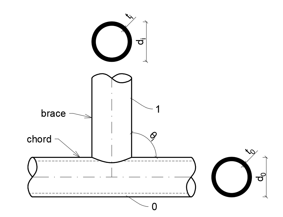 | Tension | \(10 \le d_0 / t_0 \le 50 \) (but for X joints: \( d_0/t_0 \le 40 \)) | |