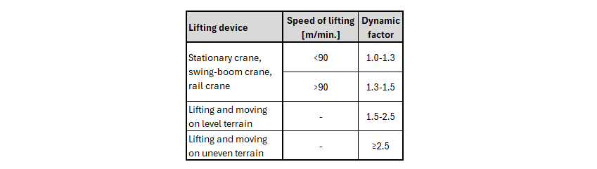 Last but not least, a dynamic factor for permanent loads is added to the combinations for lifting and transport. To give you an idea, here is a table of recommended values. However, the national standards and values recommended for the anchors used must always be followed.
