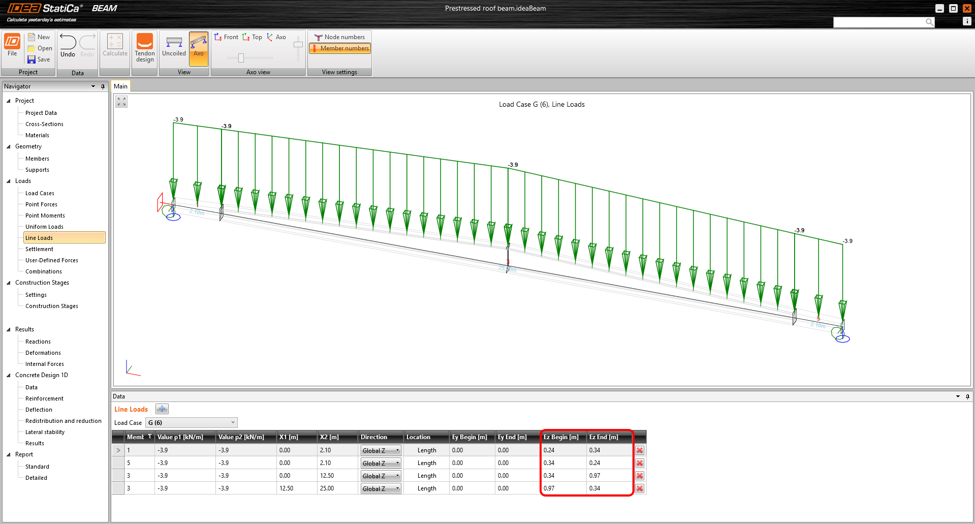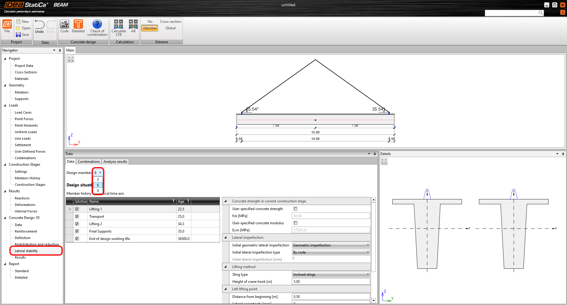 As already mentioned, for multi-span modules, each precast beam can be evaluated independently. You can switch between beams using the Design member drop-down menu.