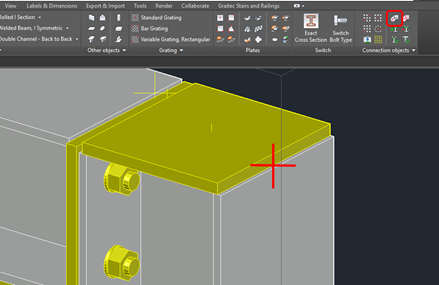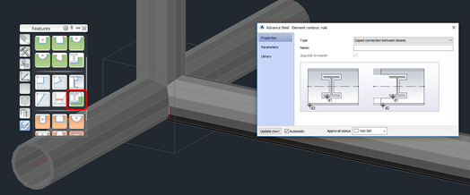 - Il modo migliore per progettare la connessione è utilizzare le macro definite in precedenza dal menu Avanzamento della volta della connessione in acciaio.