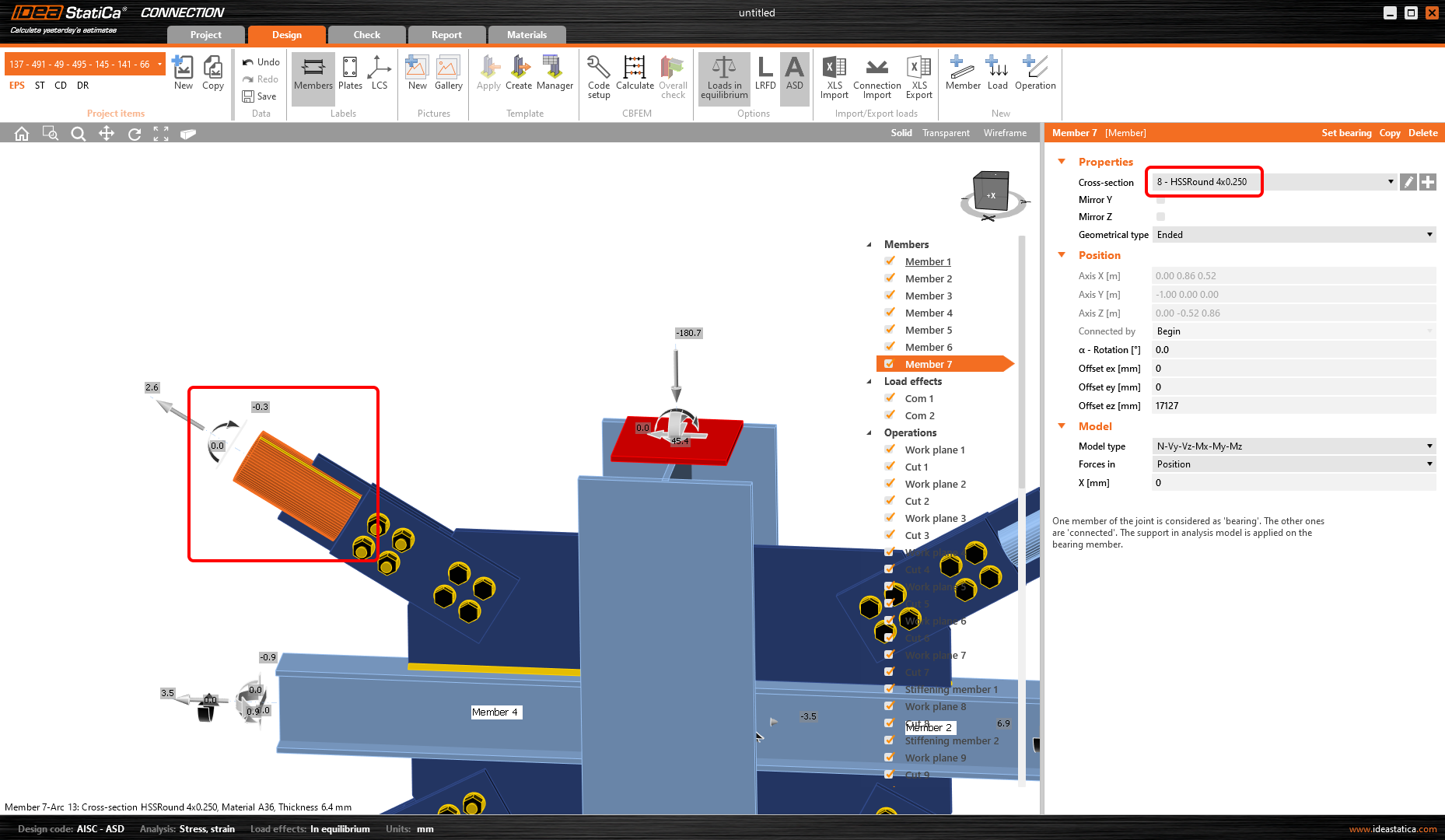 For example, you can change the cross-section of the bracing tube. The original one is HSS Round - HSS3X.250 cross-section.