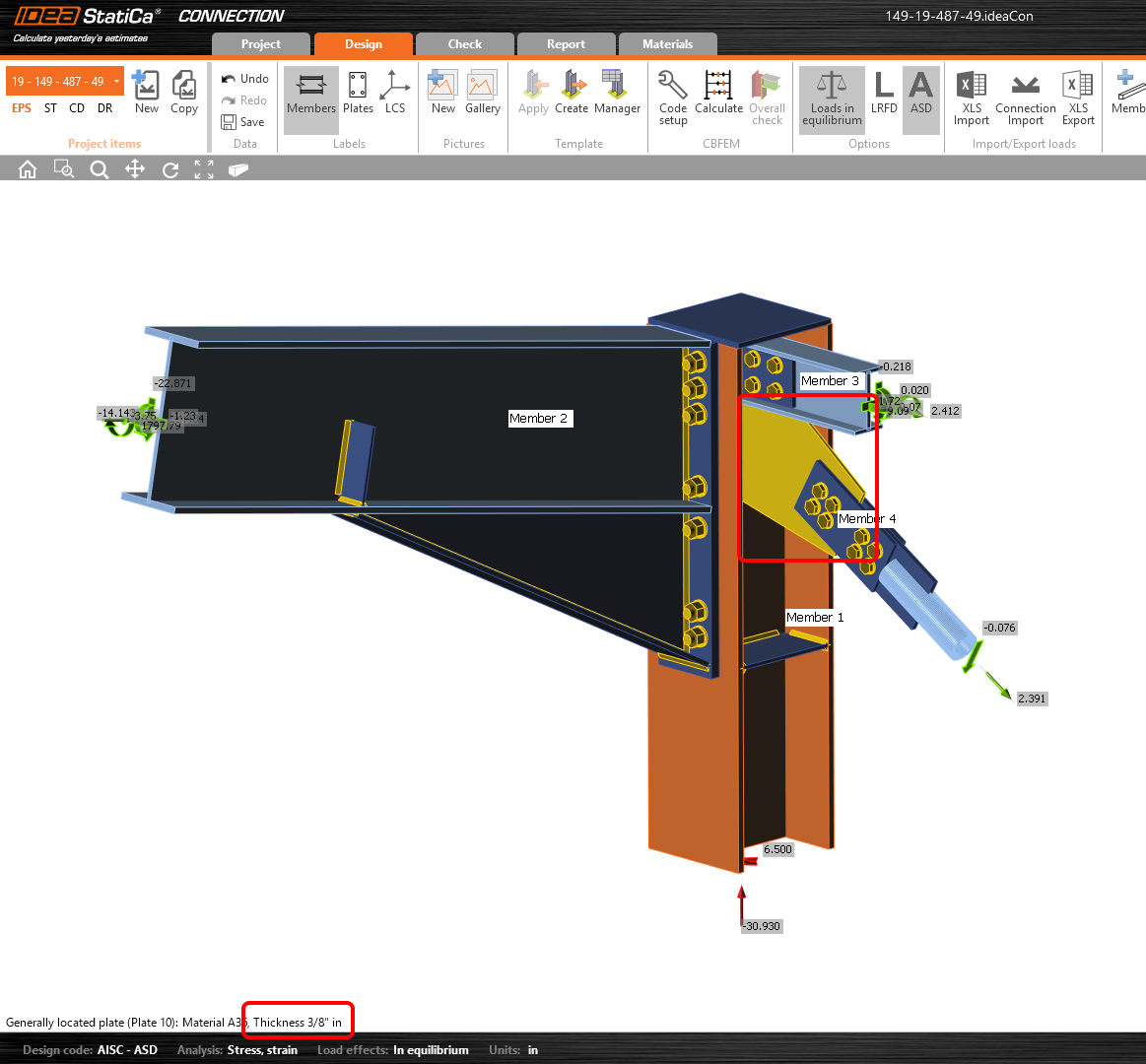 Automatic data transfer is finished and IDEA StatiCa Connection with the generated project is launched. All members and load effects were added automatically.