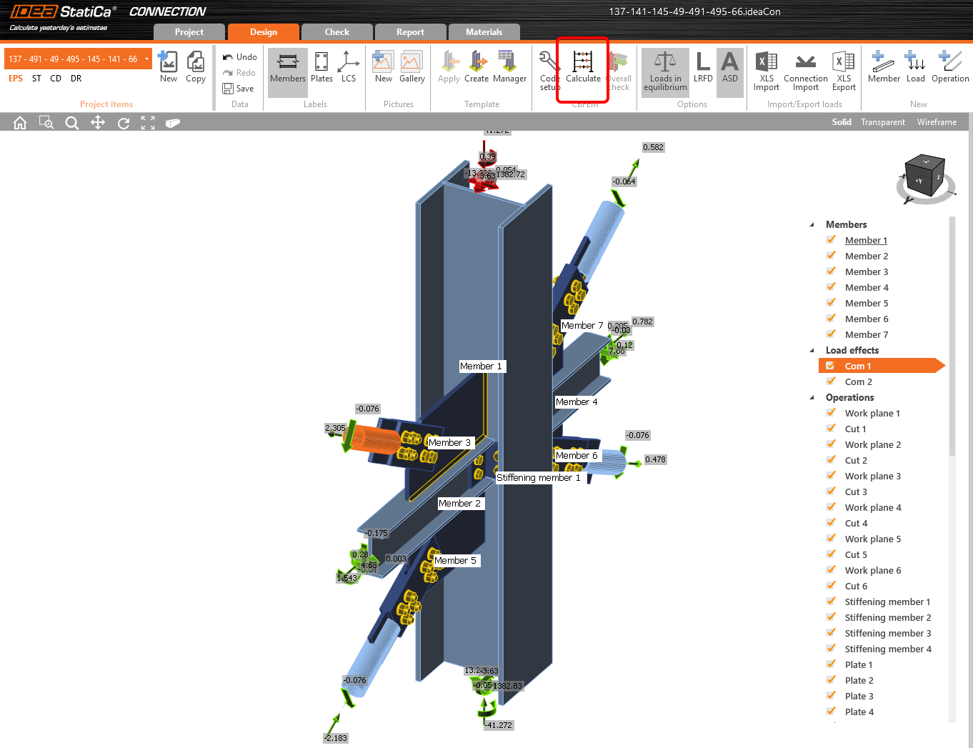 You already know how to open the project from Code-check manager, let's open the Conn 2. Now you can calculate the analysis right in the Design tab by the Calculate command.