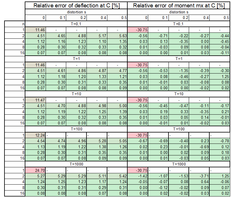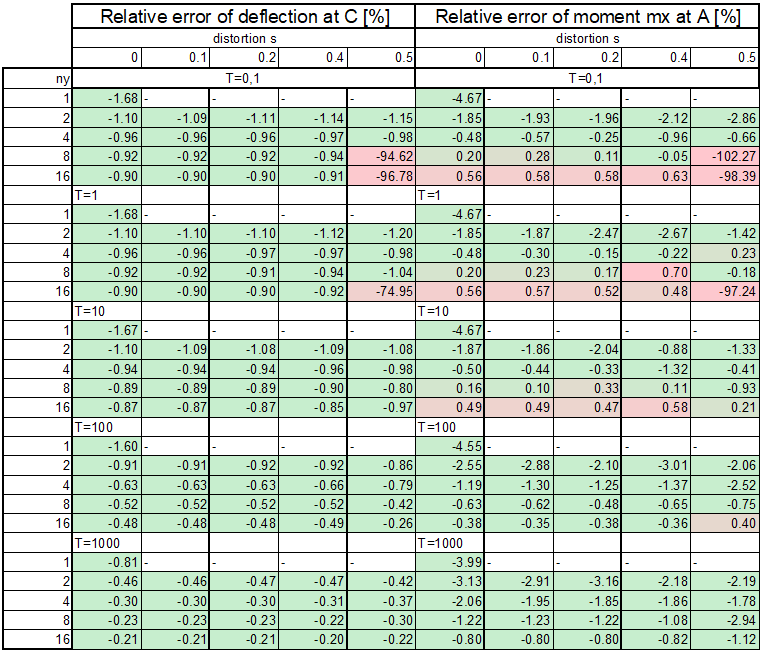 Generally, the convergence to analytical solution for plate bending is very fast. Quads do not have any issues even with a high distortion coefficient. Extreme distortion may be an issue for Trias; it is recommended to watch out for Tria elements with very bad aspect ratio. IDEA StatiCa Steel greatly prefers Quads in automatic meshing.
