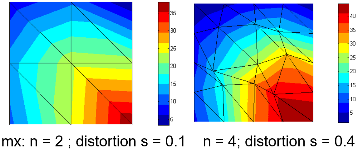 Distortion coefficient s of mesh is defined by moving all internal nodes by