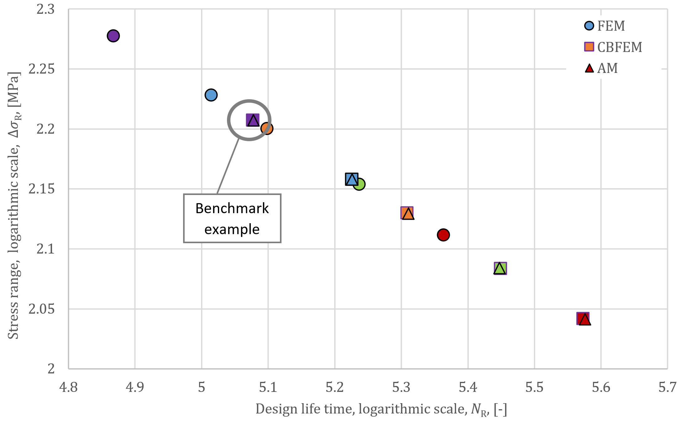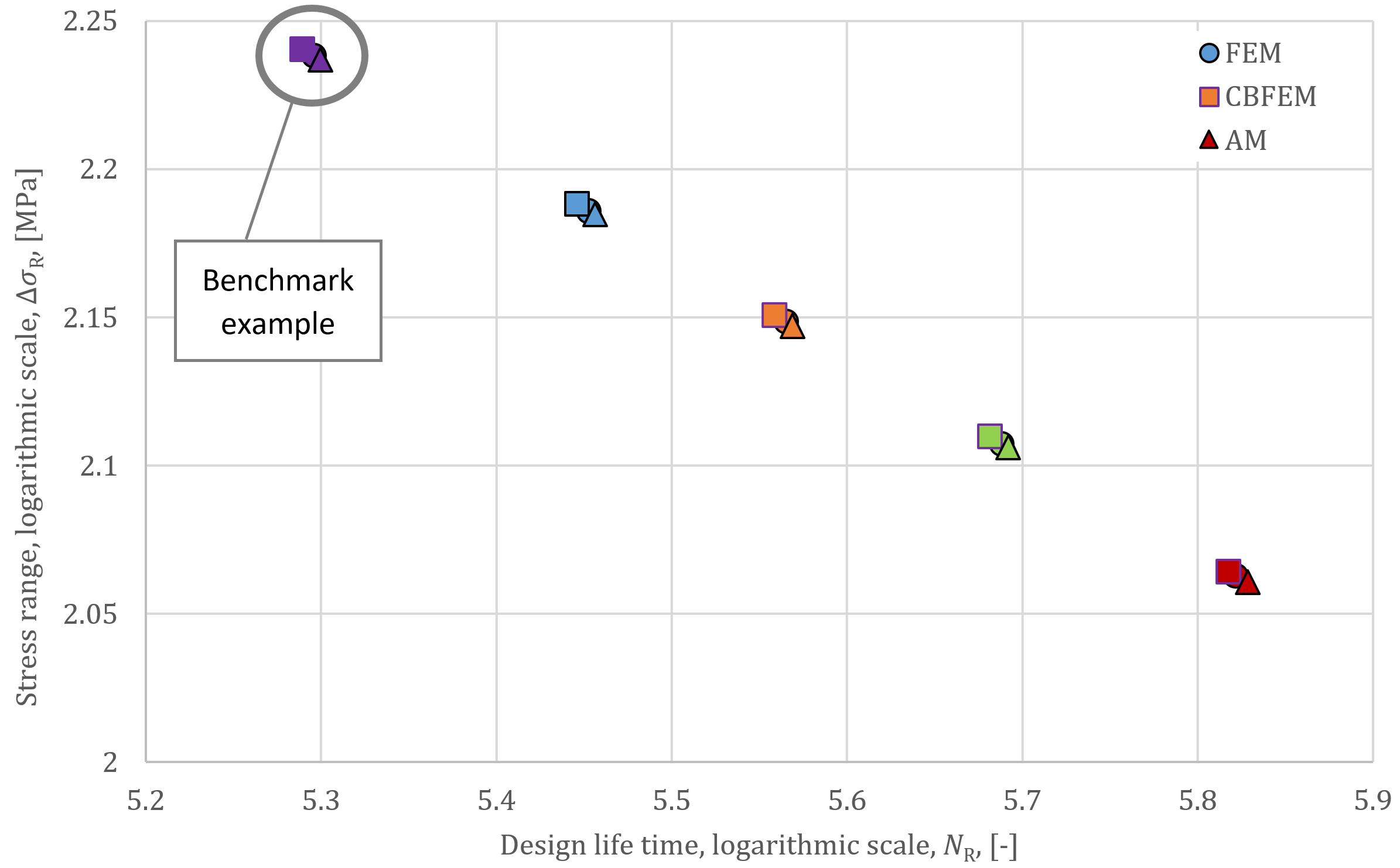The numerical calculation CBFEM is verified on analytical and numerical FEM models according to the stress range and fatigue endurance; see Fig. 2. The average value of stress ranges difference is about 2%.