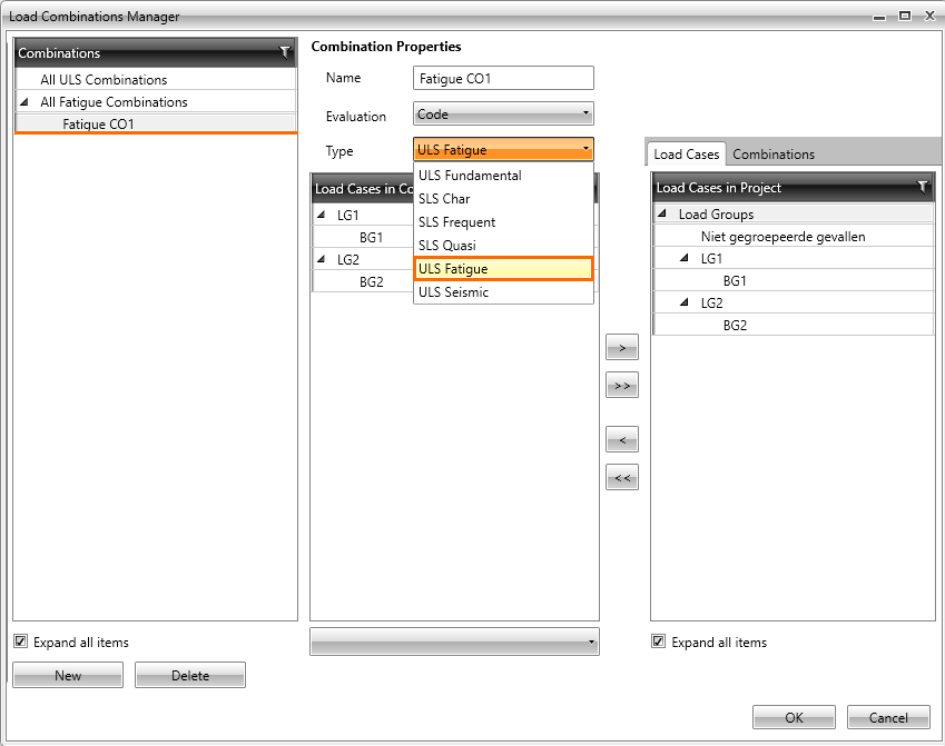Fatigue check requires having it switched on already in Project data (mainly in RCS) or set appropriate national annex (for instance NN). Another requirement is to set relevant load cases as fatigue types. This load case will be included in the combination, which evaluation needs to be set as ULS Fatigue. After this setup, the check of fatigue should be performed correctly.