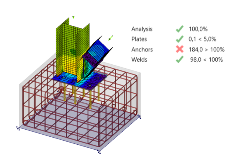 - Integrated Analysis: A focal point was the seamless workflow between IDEA StatiCa’s Connection and Detail 3D applications, enabling a comprehensive analysis of the entire steel-to-concrete connection system, including embedded reinforcement.