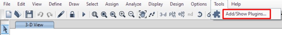Klik eerst op Tools (Extra) in het bovenste lint van je ETABS en selecteer "Add/Show Plugins...".