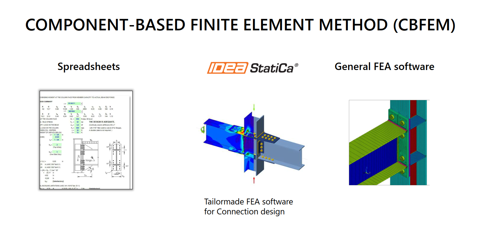 The main technical part of the presentation focused on the Component-Based Finite Element Method (CBFEM). We explained how CBFEM combines the traditional Component Method with nonlinear FEA to provide accurate, design-oriented results while keeping modelling time low.