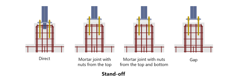 IDEA StatiCa 25.1 ondersteunt de volgende voetplaat en montageopties: