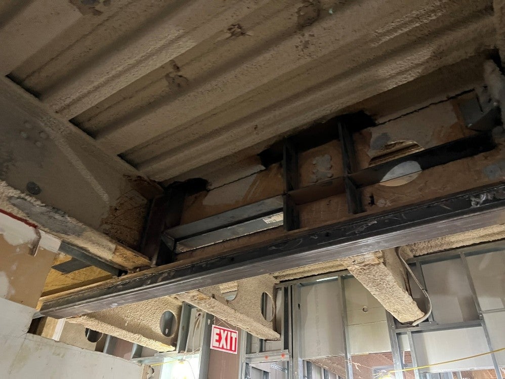 The main challenge in the project was the introduction of new web openings at the ends of existing floor beams. Due to their location and size, these openings exceeded AISC recommendations for web penetrations, requiring complex reinforcement strategies to maintain structural integrity. Traditional design methods offer prescriptive guidance on stress redistribution and reinforcement requirements for standard openings, as defined by AISC Design Guide 2: Steel and Composite Beams with Web Openings. Many of the openings on this project did not fall within these AISC guidelines, making precise analysis essential.