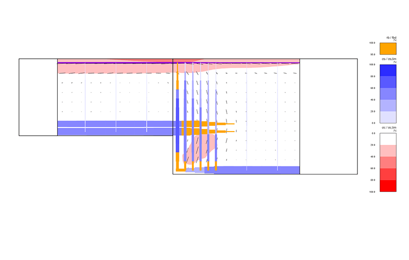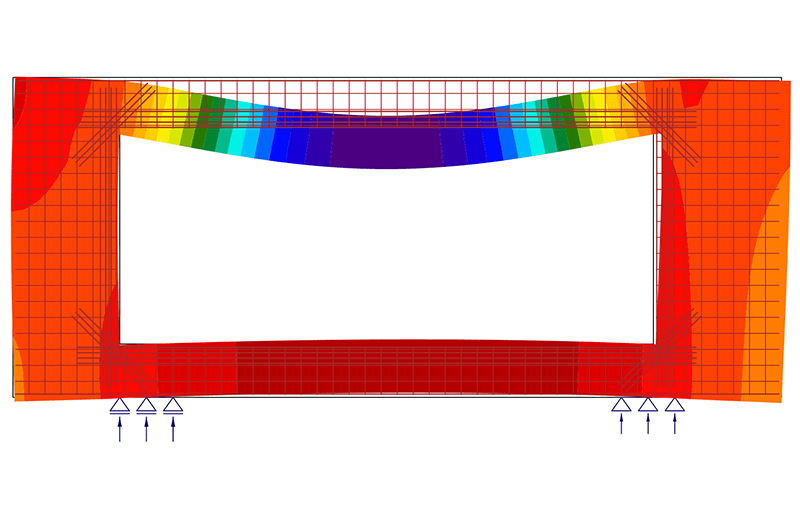 IDEA StatiCa gaat efficiënt om met alle discontinuïteitsgebieden, zoals muren, gecapitonneerde uiteinden, openingen, ophangingen, beugels en gebieden boven steunen. Met IDEA StatiCa kunt u elk betondetail analyseren en bepalen hoeveel wapening nodig is en waar.