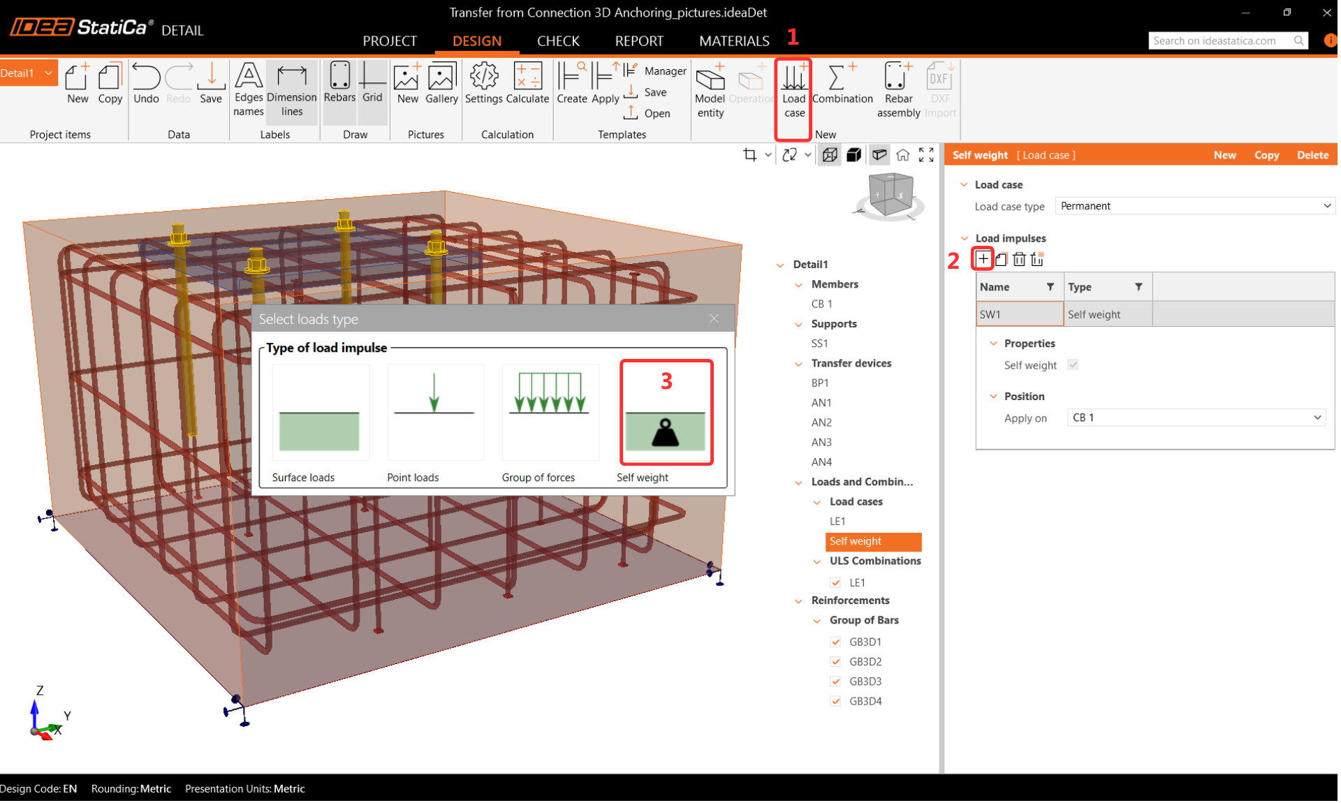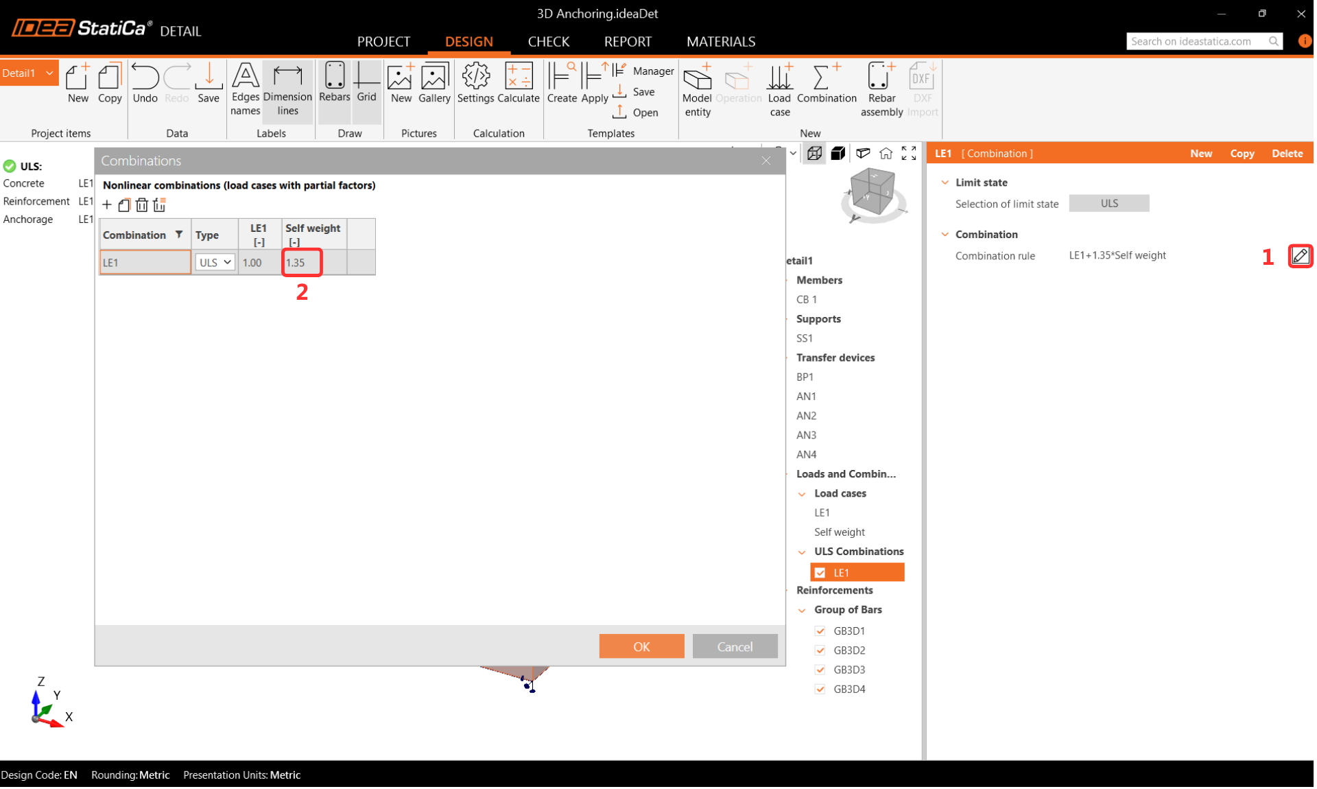 Combinaties worden overgenomen uit IDEA StatiCa Connection. Alle gevolgen van het importeren worden in detail besproken in - Importeren van verankeringen van Verbinding naar Detail.