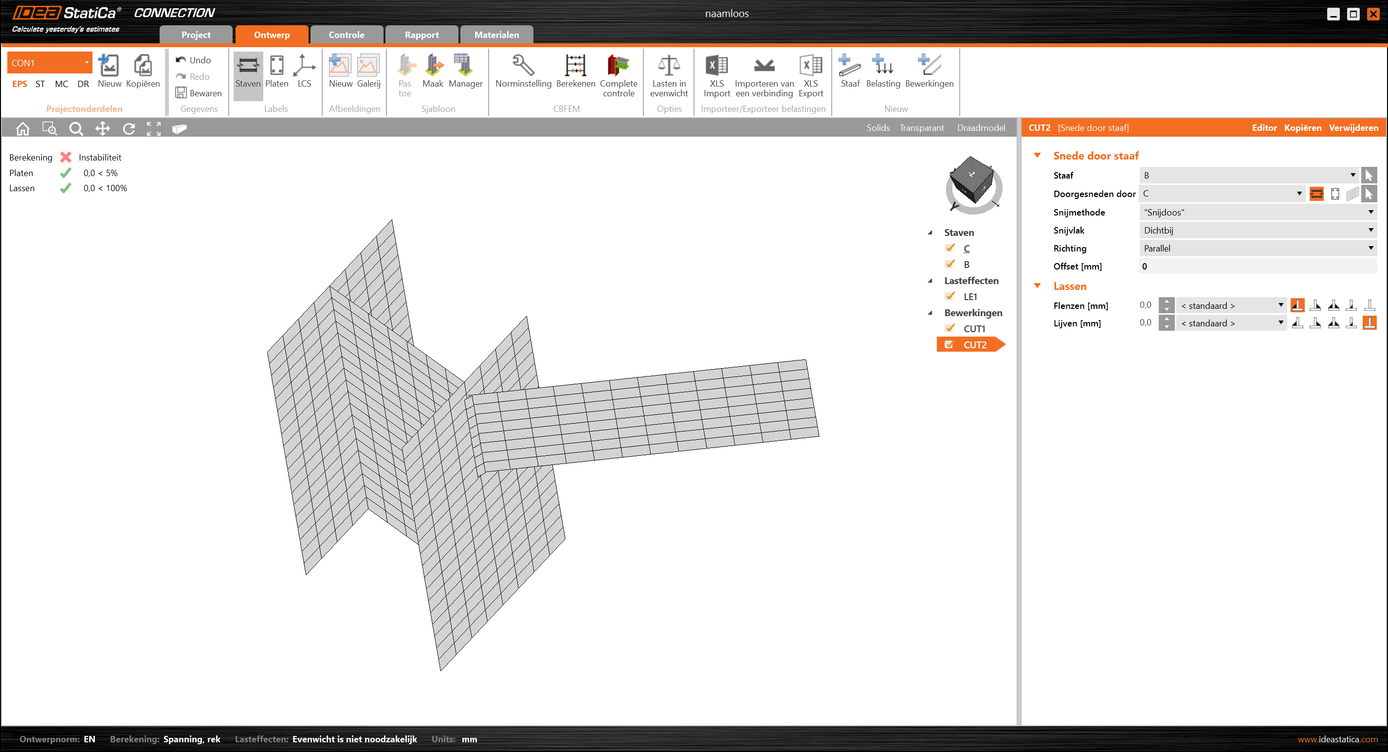 Wanneer een staalverbinding in IDEA Connection niet tot een stabiele toestand gerekend kan worden, kan het zijn dat er een 'instabiliteit'of een 'mechanisme ontstaat.