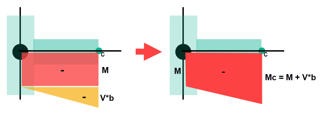 Wanneer er gelijktijdig een moment en een dwarskracht in een verbinding optreden kan het moment en het momenteffect t.g.v. het verplaatsen van de dwarskracht dan wel bij elkaar geteld worden of in mindering gebracht worden op elkaar. (superpositie)