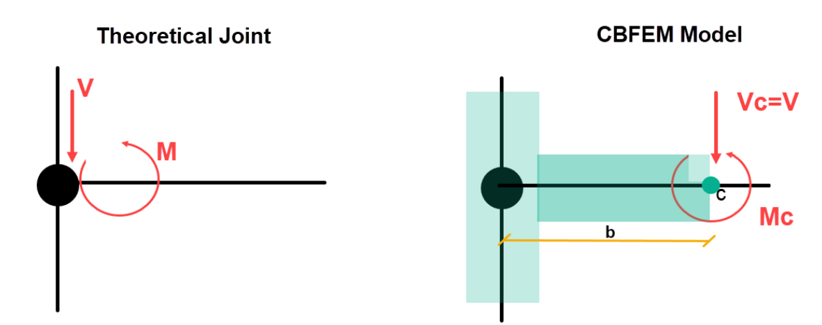 IDEA Connection kan de optredende krachten in de theoretische knoop alleen uitrekenen door deze naar de het einde van de staafsegmenten te transporteren. Het optredende moment ten gevolge van het verplaatsen van de dwarskracht noemen we het momenteffect.