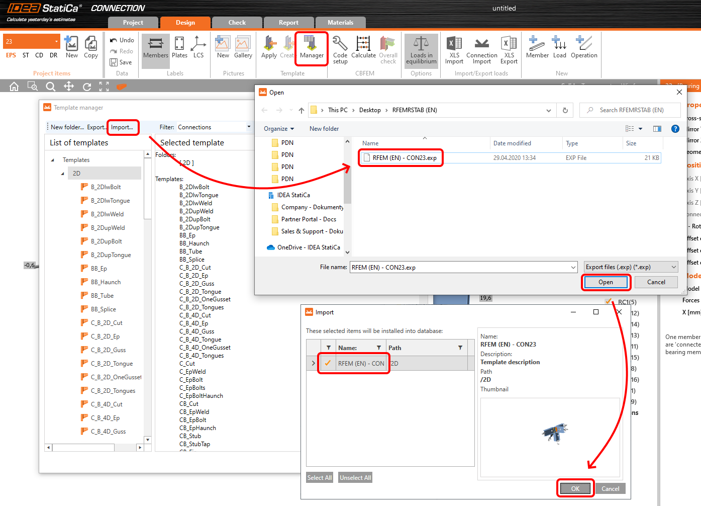 Open de Sjabloon Manager en importeer de Sjabloon in uw IDEA StatiCa template database.
