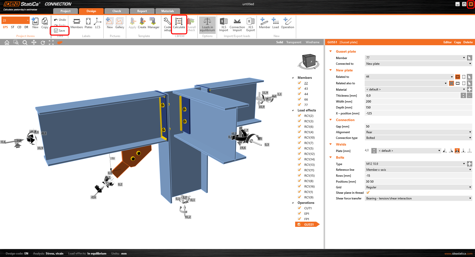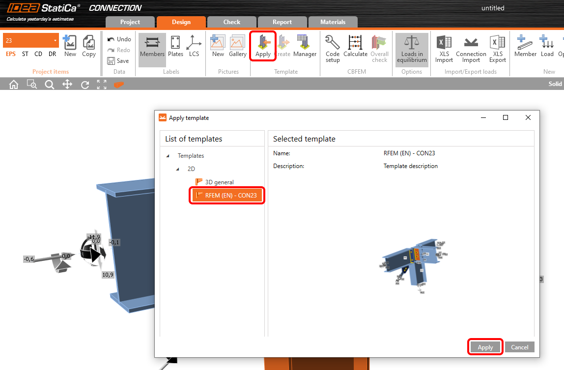 De ontwerpsjabloon wordt toegepast en u kunt gewoon op Opslaan klikken en de module CONNECTION sluiten, of u kunt de berekening nu uitvoeren en ook de verbinding controleren.