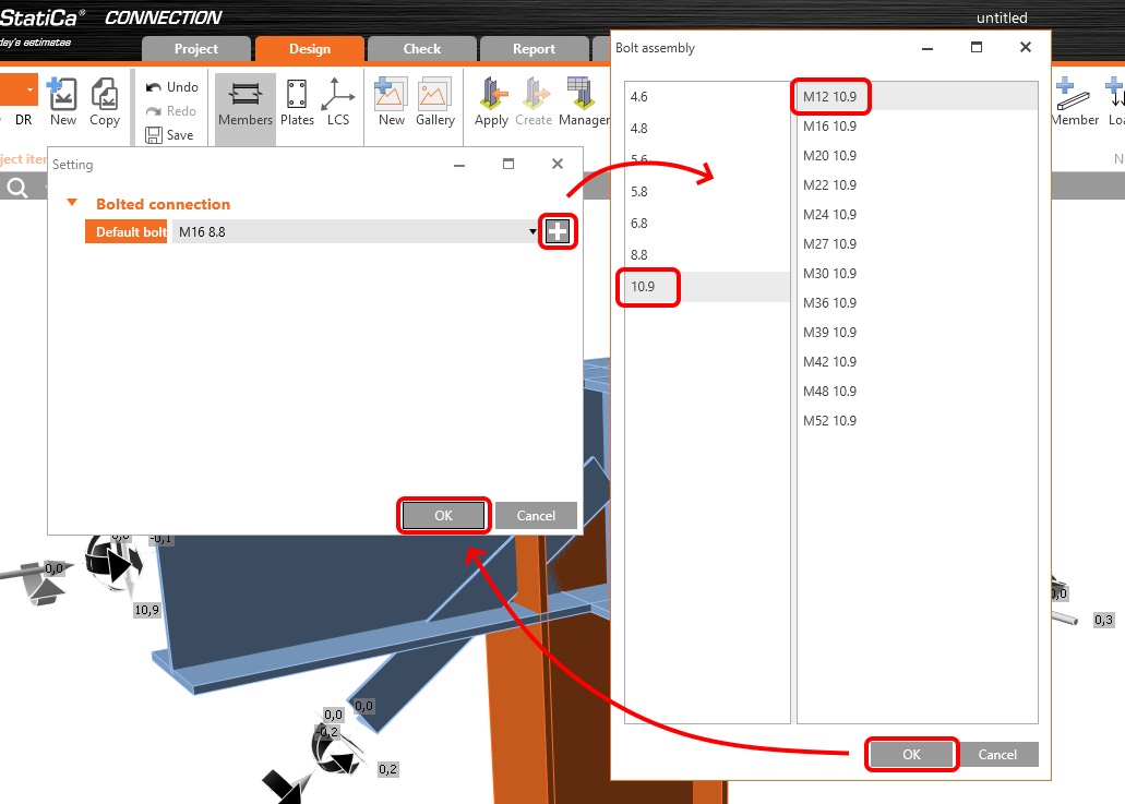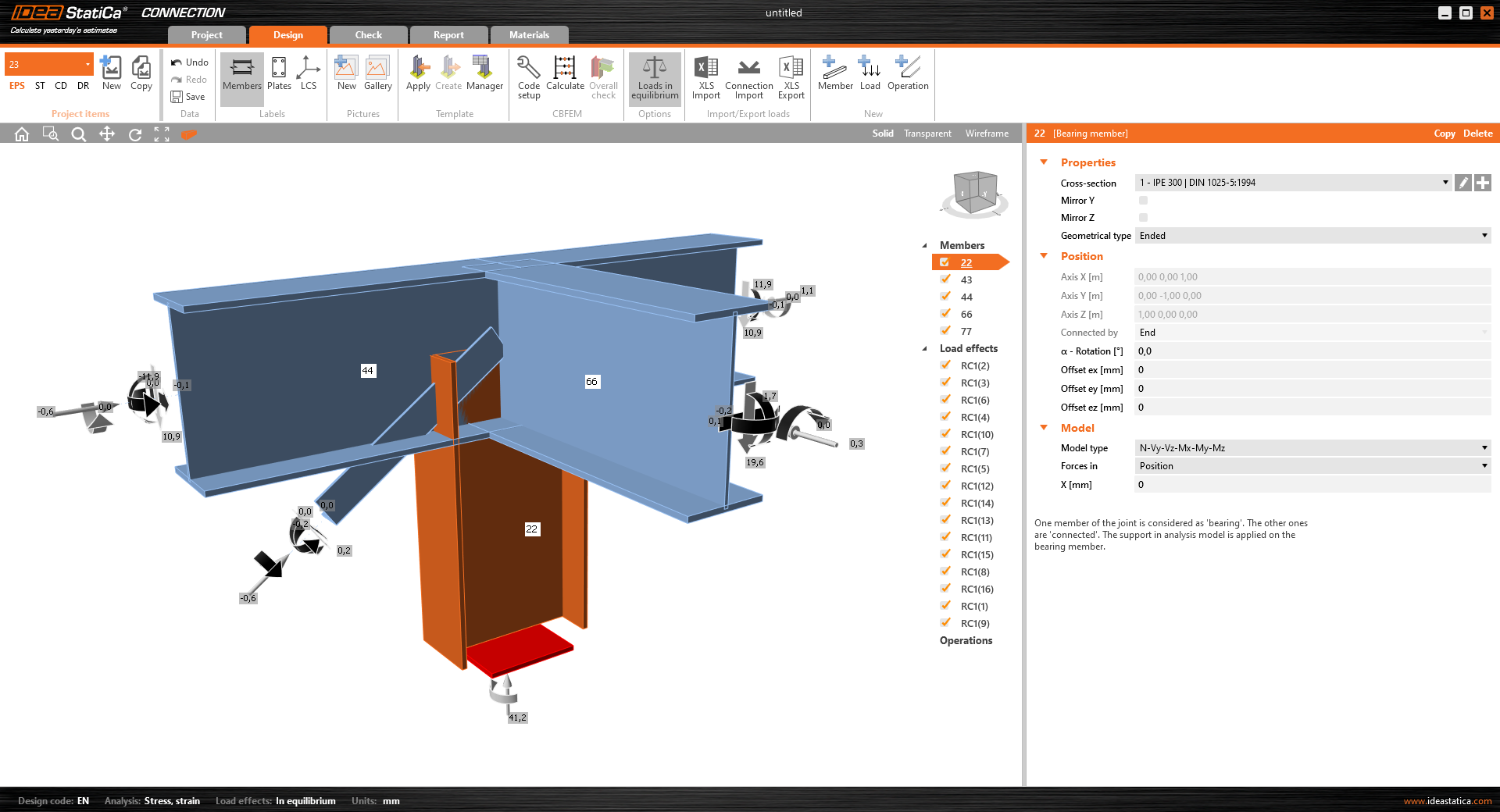 IDEA StatiCa wordt geopend en u kunt de bijgewerkte geometrie zien terwijl de ontwerpbewerkingen de instellingen behouden.