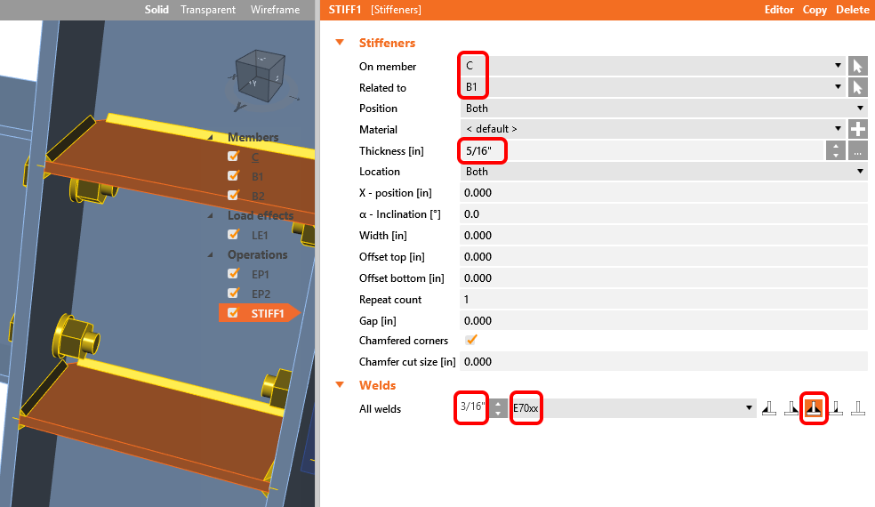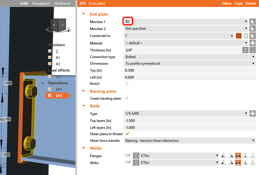 Next, you modify cross-sections of members B1 and B2 to W(Imp)8X13.