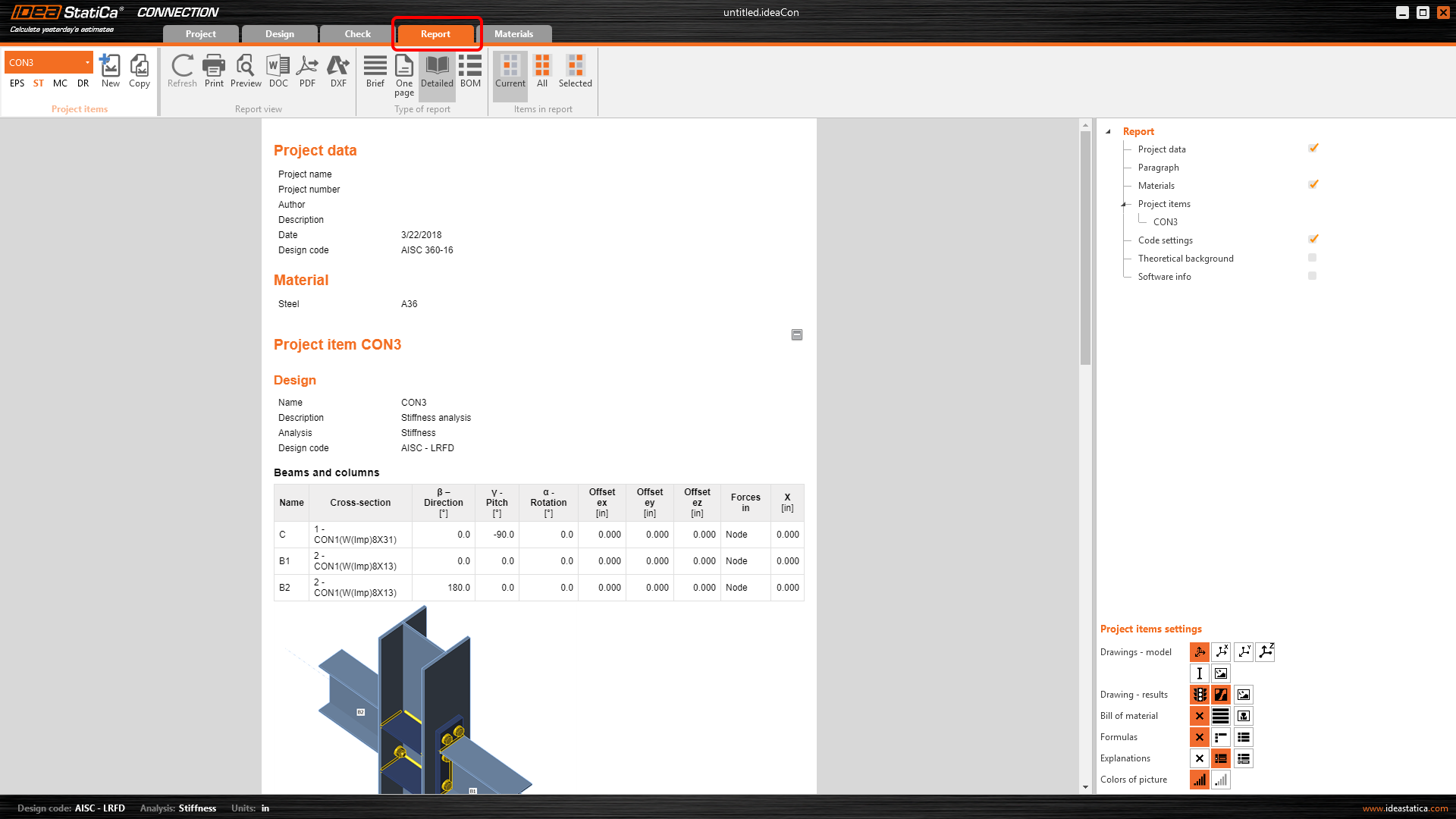 At last, go to the Report tab. IDEA StatiCa offers a fully customizable report to print out or save in an editable format.