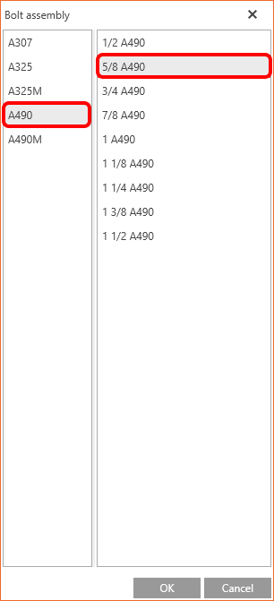 And proceed with the choosing of the desired bolt assembly, the A490 5/8.