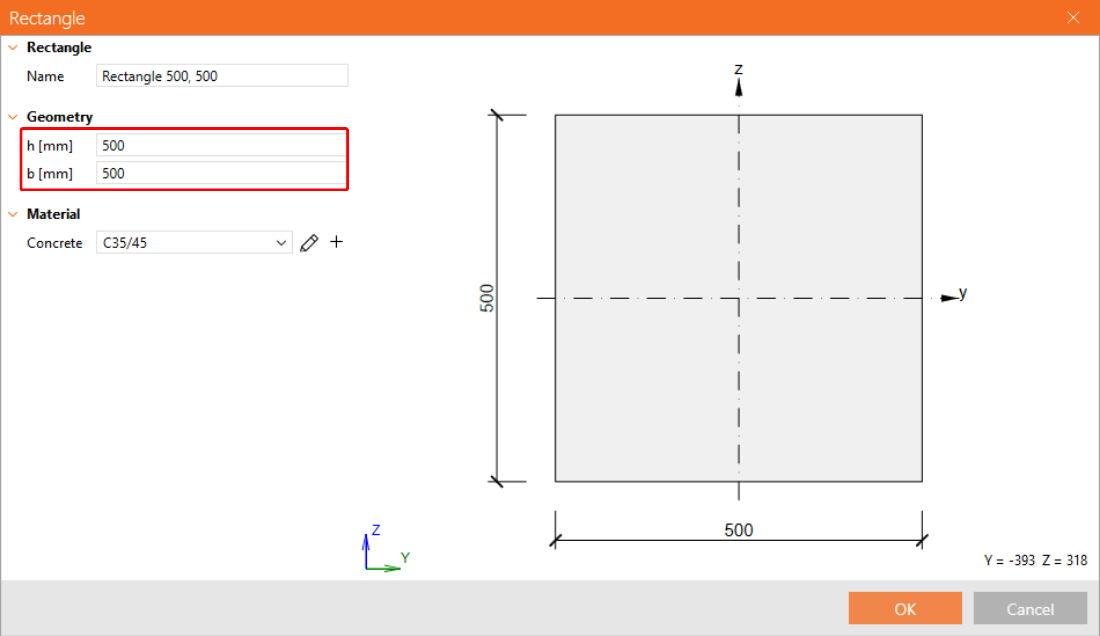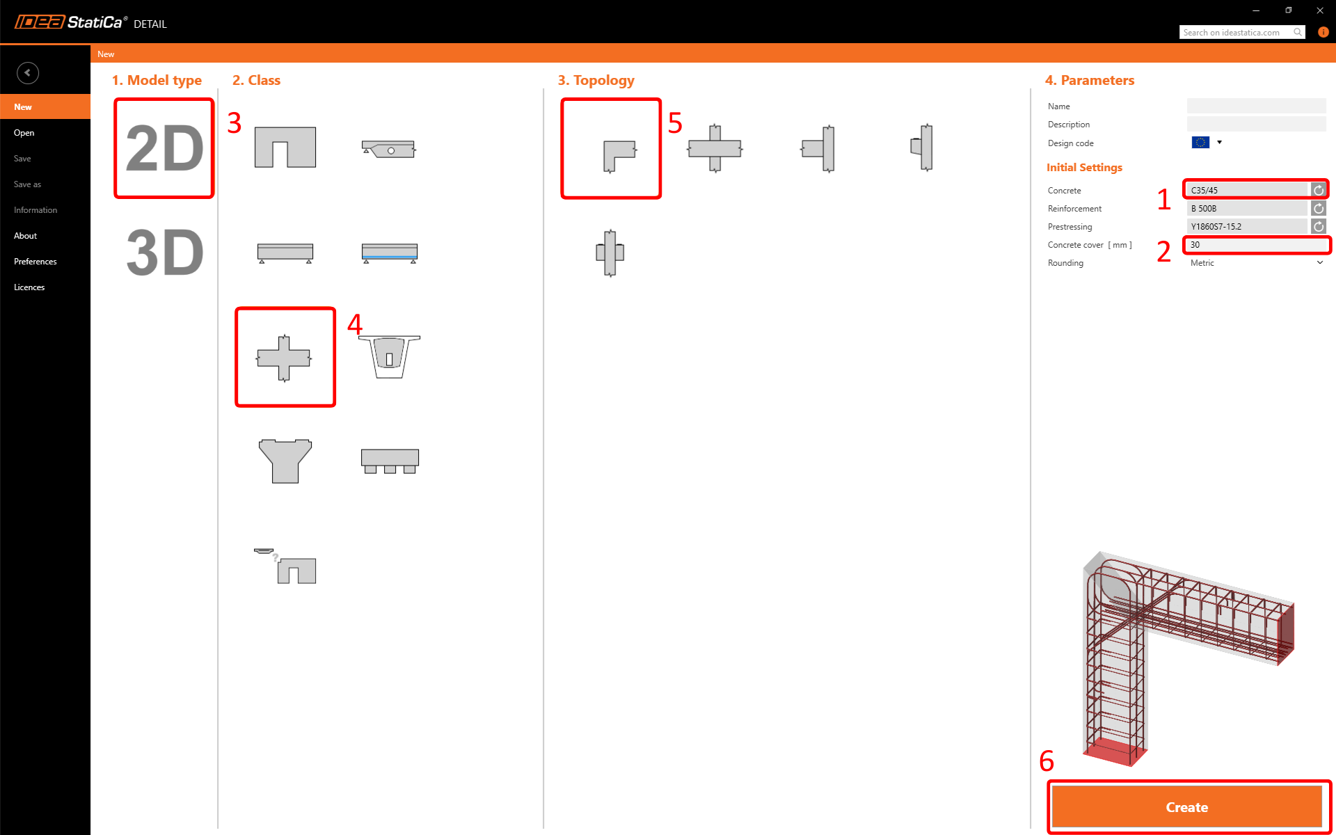 By choosing a predefined template the software will automatically generate the geometry, load, and reinforcement.