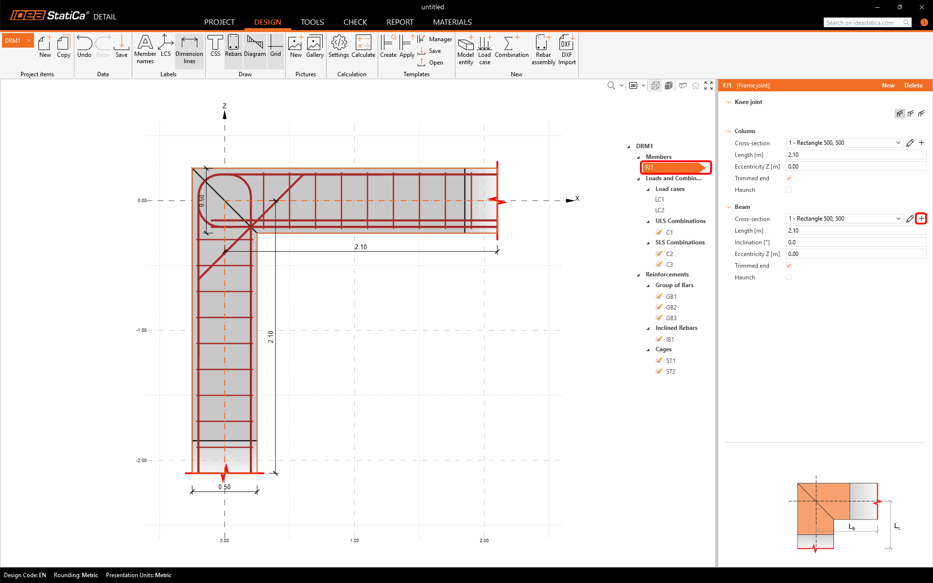 Start with the modification of the geometry. The predefined knee joint consists of a Column and a Beam. Change the cross-section of the column by clicking on Edit parameters.