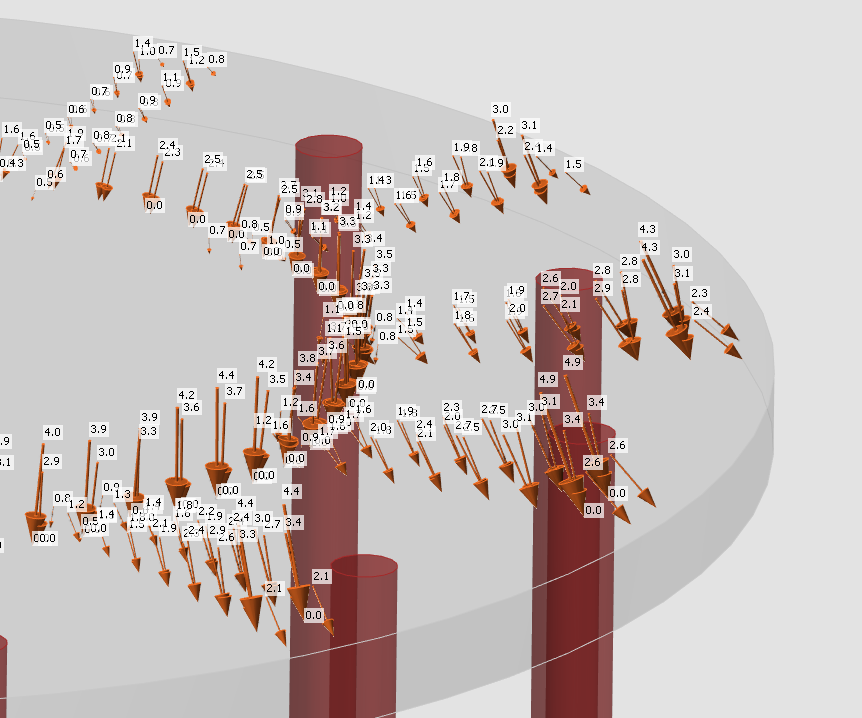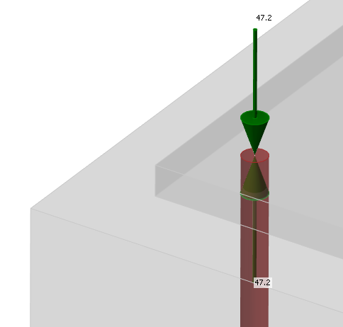 Wanneer het model wordt geïmporteerd vanuit Connection app, worden de laadimpulsen automatisch aangemaakt. De belasting van ankers wordt in de scène weergegeven door een dubbel aantal pijlen in tegengestelde richting.