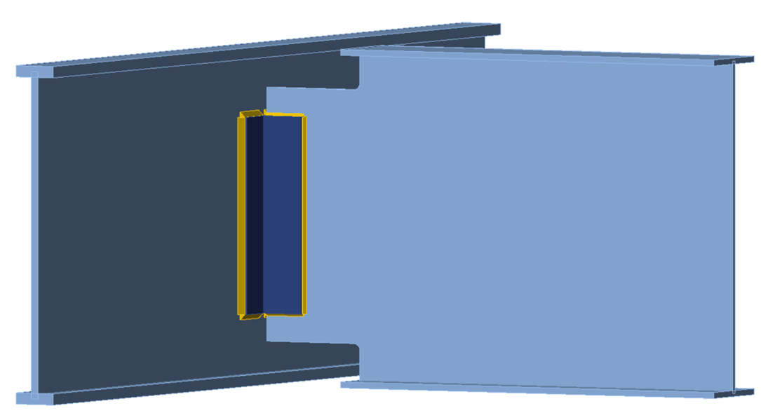 Cope lengths of 1-1/2 in. and 7-1/2 in. were evaluated with varying cope depths to identify cope configurations where shear buckling controlled for the traditional calculations. These results were compared to the results of the CBFEM analysis from IDEA StatiCa. Figure 16 and Figure 17 present three-dimensional views of the connections with 1-1/2 in. and 7-1/2 in. cope lengths, respectively.