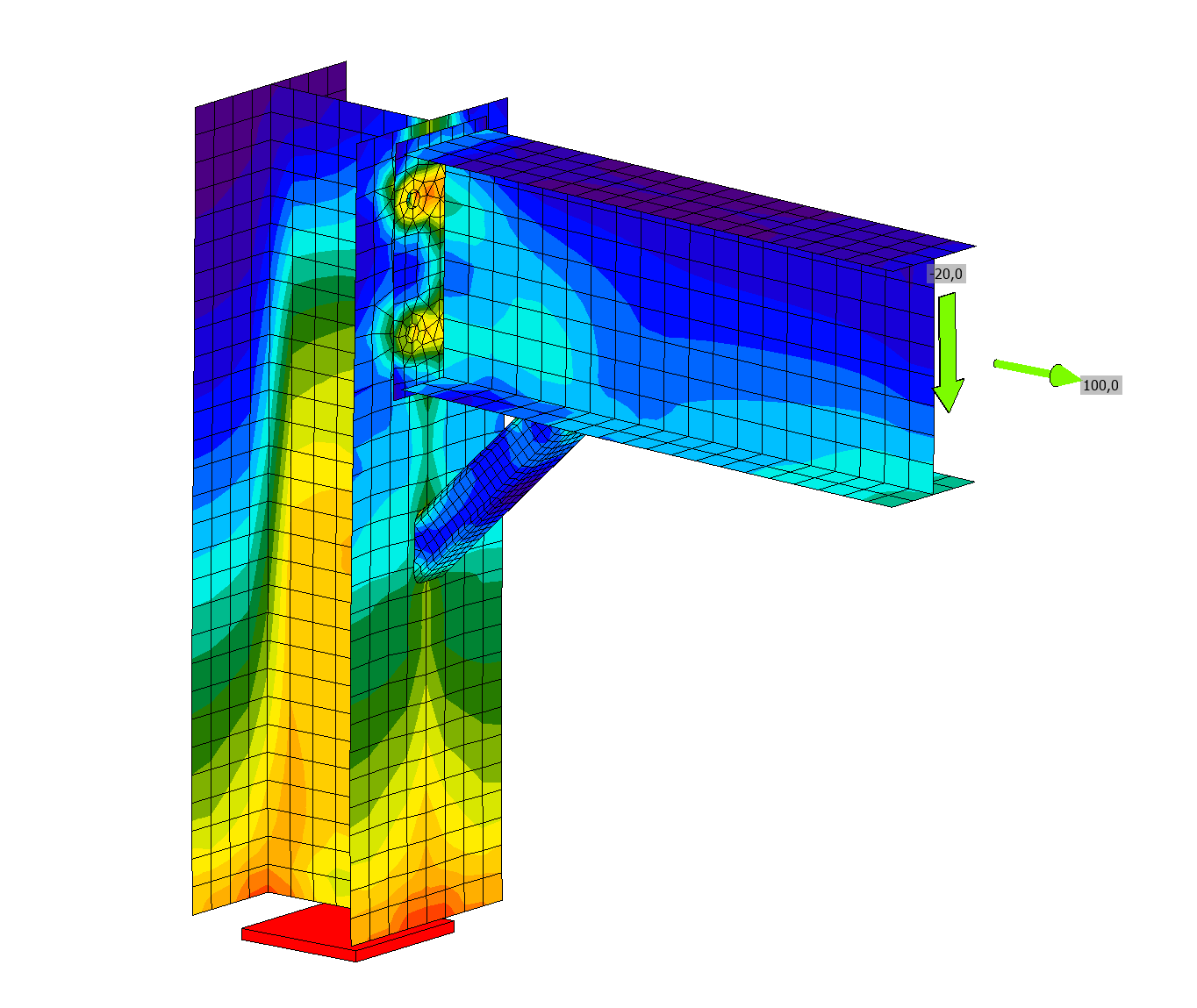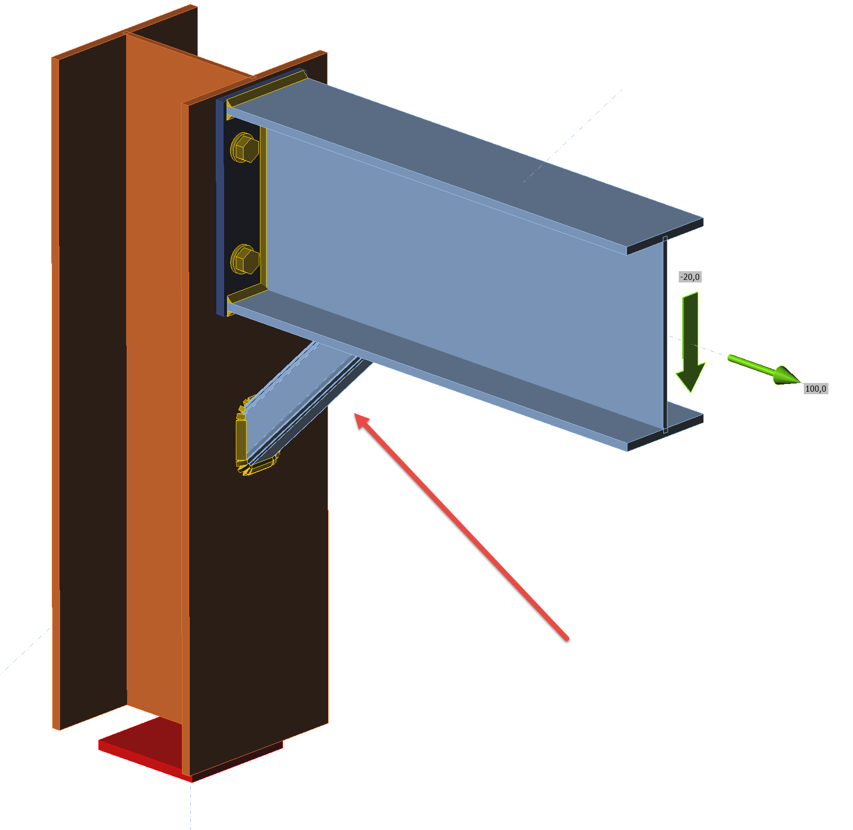 de geometrie van deze verbinding bestaat alleen maar uit de kolom en de ligger. Alle andere zaken zijn werkplaatsbewerkingen bij ONTWERP.