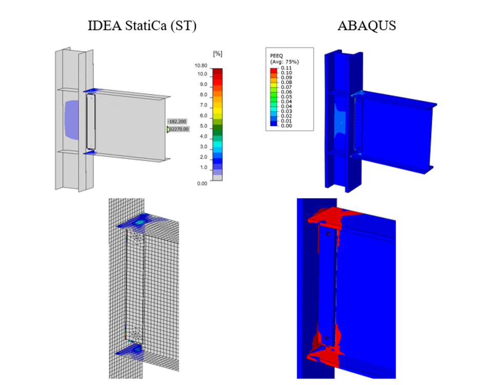 Figure 3.20: Comparison of the calculated plastic strain between IDEA StatiCa and ABAQUS models