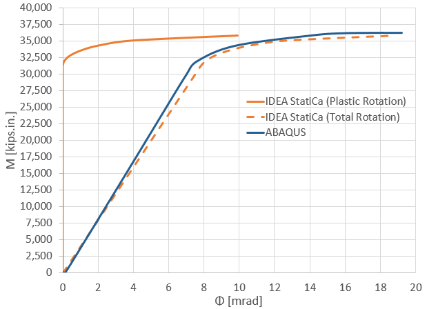 Figure 3.21: Moment-rotation comparison between IDEA StatiCa and ABAQUS