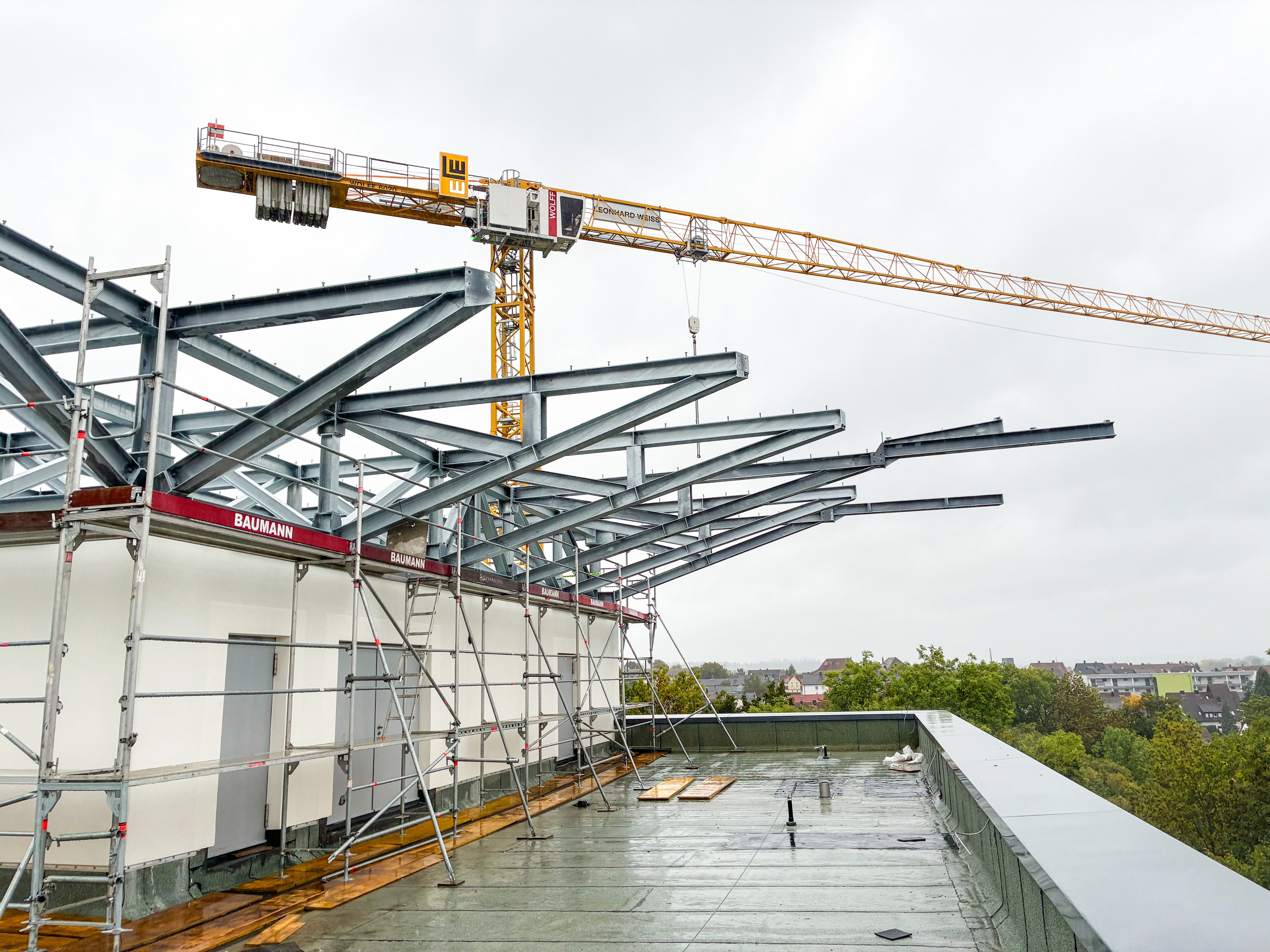 Each assembly operation required coordination with the steel contractor to minimize the number of on-site bolted connections without compromising structural integrity.